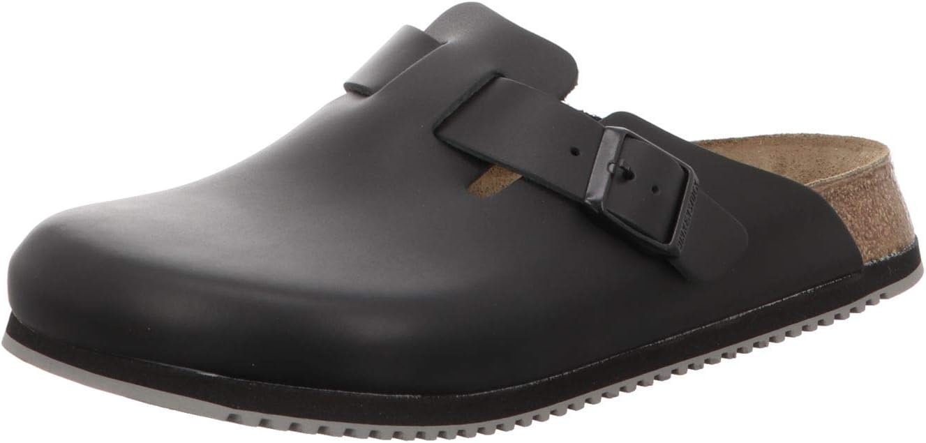 The Birkenstock classic model Boston has a strap on the instep. With the help of the integrated strap and a sturdy metal buckle, the clog can be individually adjusted to each foot. The metal buckles are colour matched to the outer material. The insole made of fine material also ensures a smooth feel and a good climate around the feet. Due to its sole with the regular Birkenstock profile, this clog is suitable for wearing indoors and outdoors. The models with super outsole we recommend especially people who spend a lot of time on their feet. Especially in walking and standing occupations you appreciate the secure hold, the freedom of movement of the feet and the high shock absorption. The rubber profile is abrasion-resistant, non-slip as well as oil and grease resistant. The EVA midsole allows the foot to roll easily and provides excellent step cushioning. You have not spent a day on your feet more comfortably.