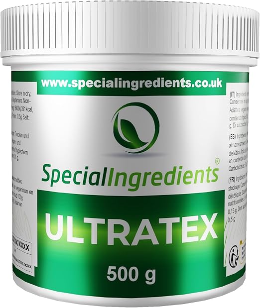 Ultratex is a must have product for any kitchen. It is an extremely versatile, high performance, thickening starch. It can be added to both hot and cold liquid preparations until the desired thickness is reached. It is a tasteless, colourless and gluten free powder. When added to a liquid it disperses quickly and evenly without forming lumps. Thicken to an ideal texture and consistency without compromising the flavour. Simply add 1-5% for instant thickening, hot or cold.